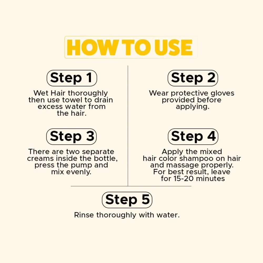 Apply on dry hair focusing more on greys. Massage for 3-5 mins